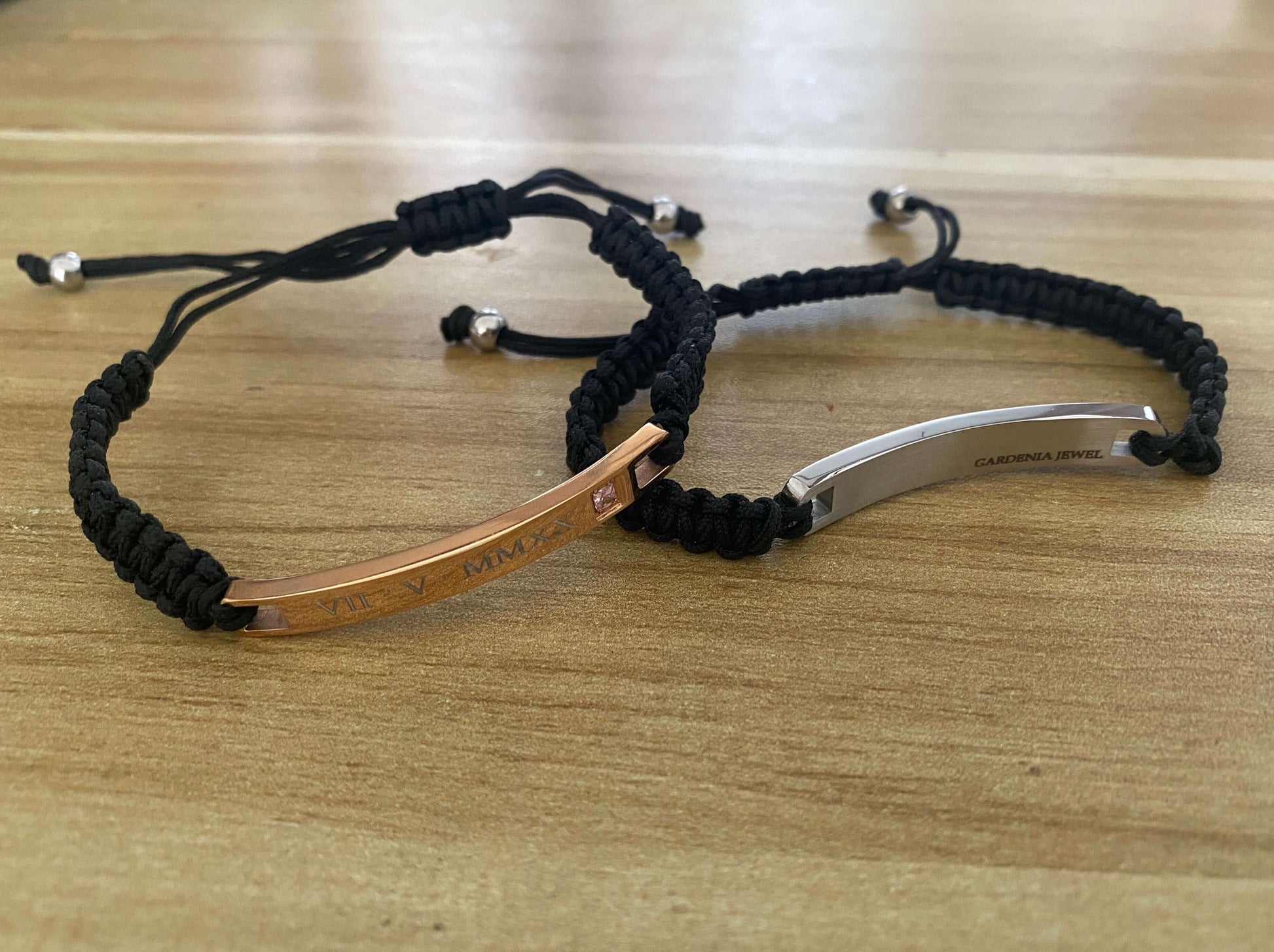 - The custom engraved bracelets can engrave 1 or 2 lines, and the more words you choose to engrave, the smaller the words will be. Some engraving suggestions for you to begin with: Names, Feelings, Dates, Coordinates, Numbers, Lines from songs, Dreams, Words with meaning, etc.