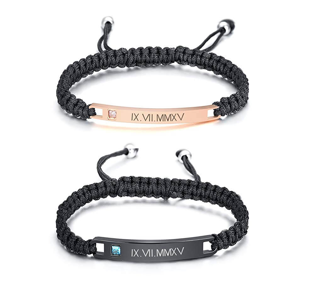 This couple's set can be engraved name, date, letters, coordinate, numbers, Roman numbers, symbol, etc.