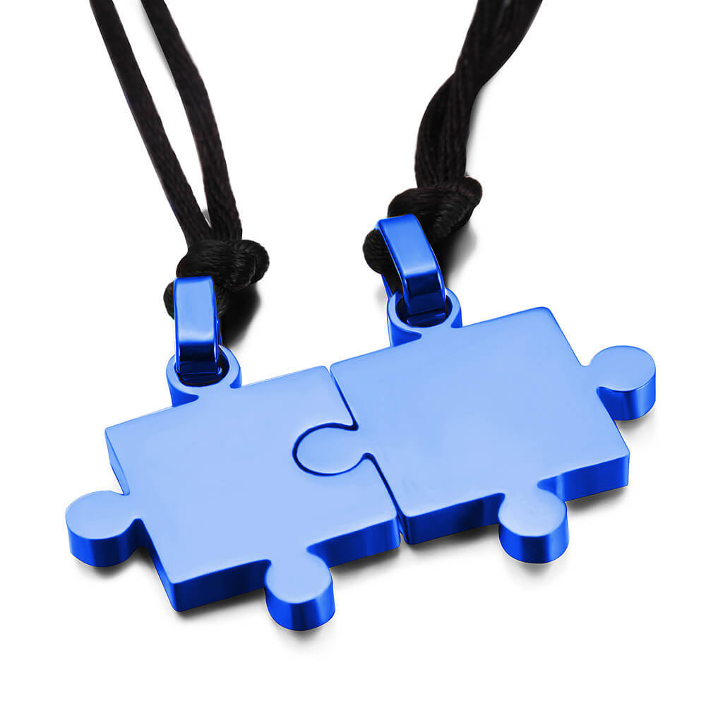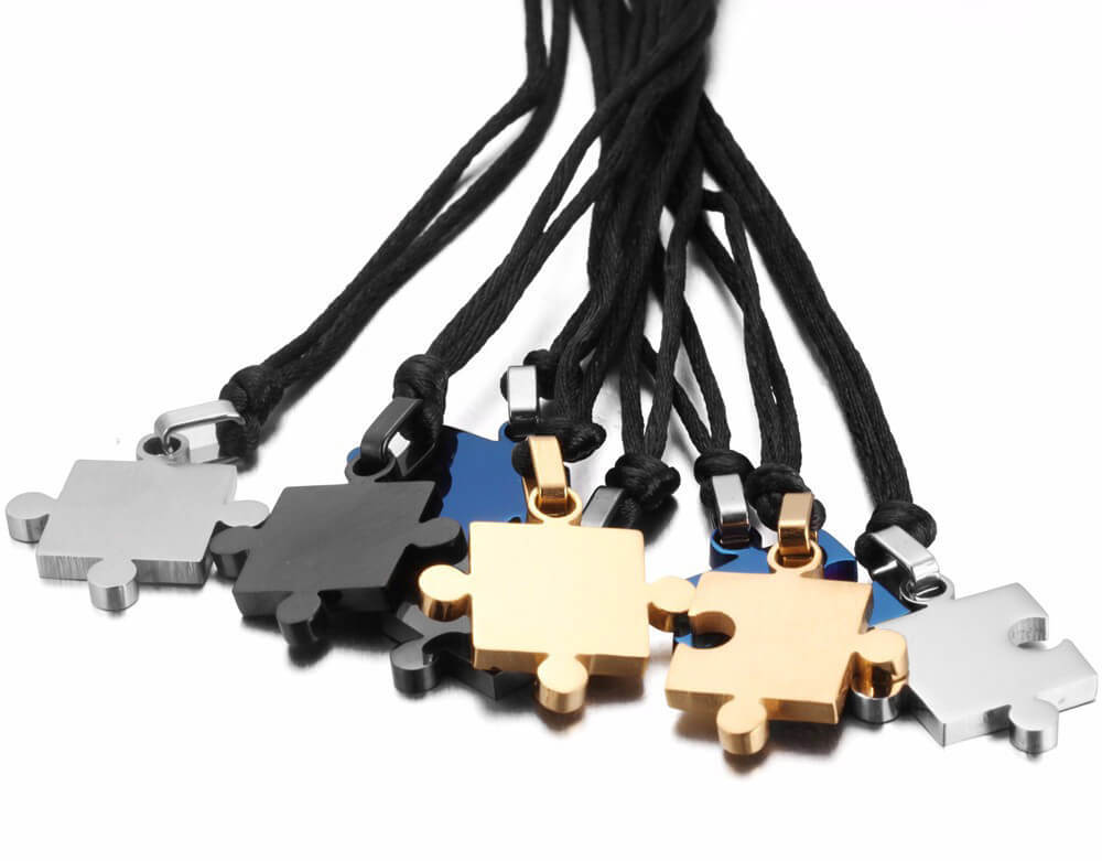 This couple's necklace set can be engraved name, date, letters, coordinate, numbers, Roman numbers, symbol, etc.